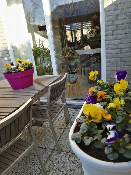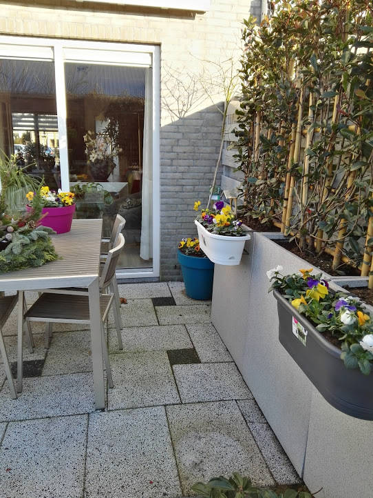 Deze plantenbakken en Violen hebben we gekocht bij Global Garden, een prachtig tuincentrum in Zwaanshoek.